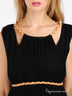 Детали: оригинальный вырез с декоративной плетеной тесьмой; застегивается на молнию сбоку; на талии тесьма