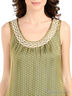 Детали: округлый вырез горловины декорирован вязаным кружевом, низ изделия дополнен воланами