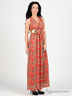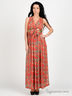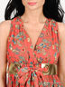 Детали: V-образный вырез спереди и сзади; на шее завязки; талия на резинке; оригинальный принт; в комплекте широкий золотистый ремень