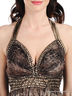 Детали: застежка на молнию на боку, лиф усилен плотными чашечками, атласные бретели завязываются на шее в бант, полочка декорирована стразами, спинка усилена многорядной резинкой