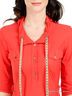 Детали: небольшой ворот-стойка с регулирующим шнурком, застежка на пуговицы на полочке до середины изделия, укороченный рукав, два нагрудных кармана, два боковых кармана, оригинальный пояс