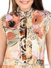 Детали: застежка на пуговицы, ворот-стойка, втачной неэластичный пояс с золотистой прострочкой