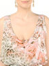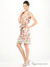 Детали: платье отрезное по линии талии, лиф состоит из основной ткани и отделочной полупрозрачной ткани декорированной камнями, лямки средней толщины, застежка на молнии сбоку по шву изделия, подол юбки - волан, пришитый пояс из основной ткани. изделие выполнено в яркой летней расцветке.
