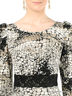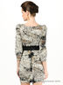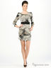 Детали: вырез горловины - лодочка, рукав 3/4 присборен у плеча, по поясу вставка из кружевной ткани отделана камнями, застежка на молнии по спинке, изделие выполнено в оригинальной яркой расцветке.