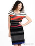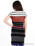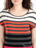 Детали: круглый вырез; короткий цельнокроеный рукав; оригинальный принт - разноцветная полоска