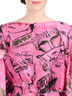 Детали: вырез "щель", расклешенные короткие рукава, по бокам украшено воланами, талия подчеркнута поясом, оригинальный принт