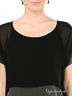 Детали: вырез горловины - лодочка, на спинке небольшая резинка, поверх изделия - тонкая полупрозрачная ткань присборена у резинки, короткий рукав, оригинальный дизайн.