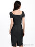 Детали: V-образный вырез с запахом, короткие рукава, сзади застегивается на молнию и крючок, полочка оригинально присборена