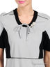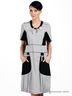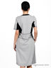Детали: округлый вырез горловины, спереди втачные карманы, низ изделия посажен на эластичную резинку, изделие декорировано лентами и пуговицами