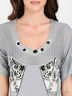 Детали: круглый вырез; короткий рукав на кулиске; оригинальный крой юбки; декорировано вставками с принтом, стразами и бусинами