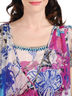 Детали: вырез горловины-каре декорирован стразами и бисером, короткий широкий рукав, заниженная талия, спинка усилена многорядной резинкой, втачной пояс с декоративной драпировкой