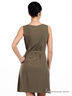 Детали: вырез каре, талия подчеркнута поясом, верхняя часть изделия с напуском
