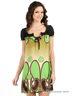 Детали: на груди кулиска с декоративной лентой, короткий рукав на резинке, пояс дополнен шлевками для ремня