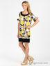 Детали: круглый вырез; короткий рукав; низ изделия дополнен трикотажной летной; два кармана; оригинальный принт