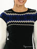 Очень мягкое и теплое вязаное платье согреет Вас в холодные вечера. Приталенного силуэта. Округлый вырез горловины на резинке в рубчик. Короткие рукава. Платье декорировано этническим орнаментом.