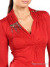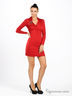 Легкое трикотажное платье отрезного кроя подойдет как для повседневной носки, так и для веселой вечеринки. V-образный вырез горловины с запахом присобран на резинку и декорирован оригинальными бусинами и цепями. Низ изделия с подкладом присобран у основания. Завязывается на тонкие трикотажные ленты на талии.