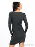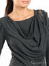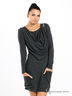 Легкое трикотажное платье отрезного кроя с эффектом двойки, подойдет как для повседневной носки, так и для веселой вечеринки. Округлый вырез горловины. Длинный прямой рукав. Плотный трикотажный пояс. Большой карман "кенгуру". Полочка декорирована пришитой брошью с цепями и бусинами.