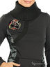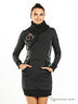 Теплое платье оригинального дизайнерского кроя добавит в Ваш гардероб новых красок. Высокий вязаный ворот. Длинный прямой рукав на вязаной резинке. Большой карман "кенгуру". Низ изделия собран на вязаную резинку. Платье дополнено различными декоративными вставками.