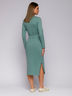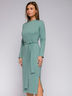 Платье мятного цвета длины миди с длинными рукавами и поясом