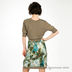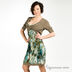 Эффектное платье сложного кроя с эффектом двойки. Верх платья декорирован тканевой полоской. Низ платья отделан трикотажной резинкой.