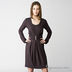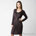 Прекрасное платье из тонкого трикотажа прямого покроя с поясом. Округлый неглубокий вырез. Низ платья выполнен складками, силуэт покроя прямой. Длинный рукав. Прилагается пояс с застежкой украшенной стразами. На модели данное платье представлено размером M. Оттенок платья насыщенно-коричневый ближе к черному, цвета горького шоколада.