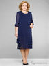 Однотонное платье комфортной длины с рукавами 3/4. Изделие с округлым вырезом горловины украшено декоративными элементами. Отличный вариант для модных дам.
