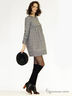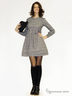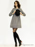 Платье свободного силуэта, чуть завышена талия. Круглый маленький вырез и длинный рукав на манжете, юбка на мелкой сборке, по низу платья застрочены складки. Платье укорочено.