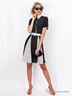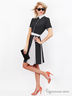 Романтичное платье с короткими рукавами и отложным воротником. Модель приталенного покроя с расклешенной юбкой. Застежка по переду. Изделие украшено контрастной расцветкой. Отличный вариант для Вашего гардероба.