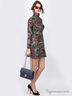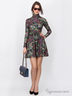 Платье водолазка, воротник стойка, длинный рукав, укороченная расклешенная юбка, приталенная модель с поясом