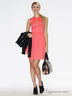 Трикотажное платье от линии груди чуть расклешено к низу. Длина выше колена. Без верхней части топа, п лифу сбоку и от центра лифа лямочки, которые завязываются на шее.
