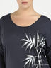 Детали: округлый вырез горловины, цельнокроеный рукав дополнен прорезью и кулиской, полочка декорирована фактурной росписью