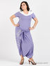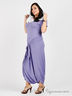 Оригинальное платье из трикотажного материала с воротом "хомут". Необычная завязка создает брюки. Изделие украшено принтами с блестками. Будьте в центре внимания каждый день.