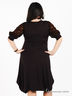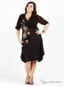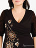 Стильное платье из эластичной вискозной ткани средней плотности приталенного силуэта. V-образный вырез горловины с декоративным запахом. Гипюровые рукава посажены на трикотажные манжеты. Изделие украшено ручной росписью. Декоративные ремешки по нижней части по боковым швам. Яркий вариант на каждый день.