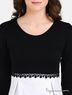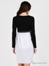 Стильное платье из плотного вискозного материала с длинным рукавом и округлым вырезом горловины. Скрытая застежка на молнию в левом боковом шве. Контрастный отрезной лиф. Тесьма по линии отреза. Встречные складки на юбке.