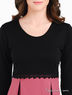 Стильное платье из плотного вискозного материала с длинным рукавом и округлым вырезом горловины. Скрытая застежка на молнию в левом боковом шве. Контрастный отрезной лиф. Тесьма по линии отреза. Встречные складки на юбке.