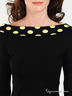Детали: вырез горловины-лодочка с отложным воротником, спинка с глубоким вырезом, длинный прямой рукав, отрезной низ изделия декорирован складками и фактурной росписью