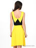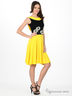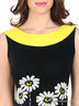 Детали: вырез горловины - лодочка с оригинальным отложным воротом, глубокий вырез по спинке, платье отрезное по линии талии, без рукавов, ручная роспись по трикотажу: рисунок - цветы, юбка - полусолнце.