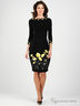 Детали: вырез горловины-лодочка с отложным воротником, спинка с глубоким вырезом, длинный прямой рукав, отрезной низ изделия декорирован складками и фактурной росписью