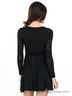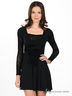 Детали: глубокий круглый вырез горловины с вставкой из отделочной ткани, двойной рукав: короткий рукавчик со сборкой из основного материала, длинный узкий - из отделочной ткани. В комплекте декоративный пояс, юбка-полусолнце.