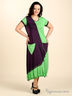 Детали: платье оригинального кроя, вырез горловины круглый, короткий рукав-крылышко, два накладный кармашка треугольной формы, низ изделия посажен на кулиску, ручная роспись по трикотажу: рисунок - ромашка.
