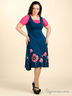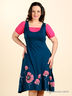 Детали: платье на широких лямках, вшитый топ, вырез горловины - лодочка со сборкой на резинке, рукав - фонарик, ворот и рукав с сетчатой оборкой, платье отрезное по линии под грудью, ручная роспись по трикотажу: рисунок - цветы.