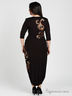 Детали: округлый вырез горловины, укороченный прямой рукав, шлейф завязывается на талии или на шее, декорировано платье росписью