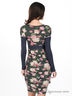 Детали: глубокий круглый вырез горловины, двойной рукав: короткий рукав посажен на резинку; длинный узкий рукав. Юбка-футляр, отделка - авторский принт, в комплекте широкий пояс.