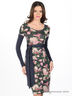 Детали: глубокий круглый вырез горловины, двойной рукав: короткий рукав посажен на резинку; длинный узкий рукав. Юбка-футляр, отделка - авторский принт, в комплекте широкий пояс.