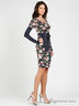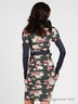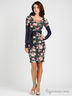 Детали: глубокий круглый вырез горловины, двойной рукав: короткий рукавчик со сборкой; длинный узкий рукав из отделочной ткани. Юбка-футляр, отделка - авторский принт, рисунок - цветы, в комплекте широкий пояс.
