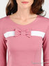 Детали: округлый вырез горловины, длинный прямой рукав, два кармана, изделие декорировано бантом и фактурной росписью