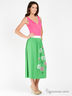 Детали: v-образный вырез горловины, втачной пояс, отрезной низ изделия декорирован фактурной росписью