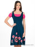 Детали: плате на бретелях средней ширины, вшитый топ с оборкой, рукав фонарик посажен на резинку, платье отрезное по линии под грудью, ручная роспись по трикотажу: рисунок - цветы.