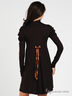 Детали: ворот-стойка, длинный прямой рукав присборен в пройме, отрезной низ изделия дополнен складками и декорирован росписью, спинка декорирована атласным бантом