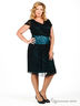 Детали: круглый вырез, короткие рукава, широкий втачной пояс украшенный кружевом, низ присборен